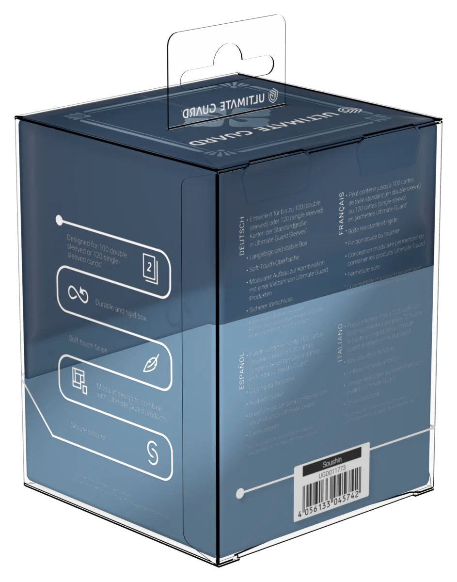 El Deck Box Boulder 100+ de la serie "Katana: The Shogun's Journey" de Ultimate Guard es duradera y fiable, y cuenta con nuestra popular superficie suave al tacto. A pesar de su cierre seguro, la Boulder 100+ es fácil y cómoda de abrir y tiene capacidad para 100 cartas con doble funda protectora Ultimate Guard (no incluidas) de juegos de cartas coleccionables como Magic: The Gathering, Pokémon, Lorcana, Flesh and Blood, Yu-Gi-Oh! y One Piece. Diseñada para combinarse con todas las cajas de almacenamiento de Ultimate Guard, esta caja para mazos Boulder 100+ encaja perfectamente en la Arkhive 400+ Xenoskin de la misma serie.