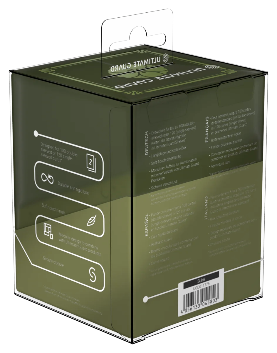 Diseñada para 100 cartas con doble funda o 120 cartas con funda individual Ultimate Guard